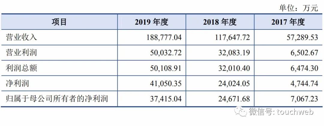 招股书显示,国台酒业2017年、2018年、2019年营收分别为5.73亿元、11.76亿元、18.88亿元;归属于母公司所有者的净利润分别为7067万元、2.47亿元、3.74亿元。