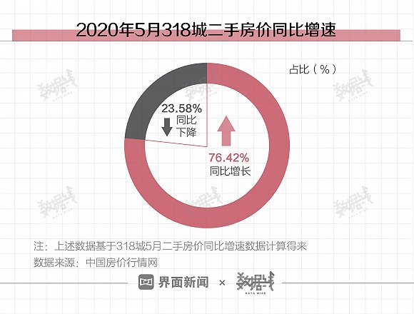 从房价情况来看,据中国房价行情网数据,2020年5月,在其监测的318城中,包含北上广深4个一线城市在内的近8成城市,二手房平均单价均实现同比增长。