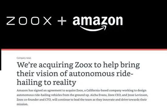 6月26日,《金融时报》报道称亚马逊以12亿美元的价格收购了自动驾驶领域的明星公司ZOOX。