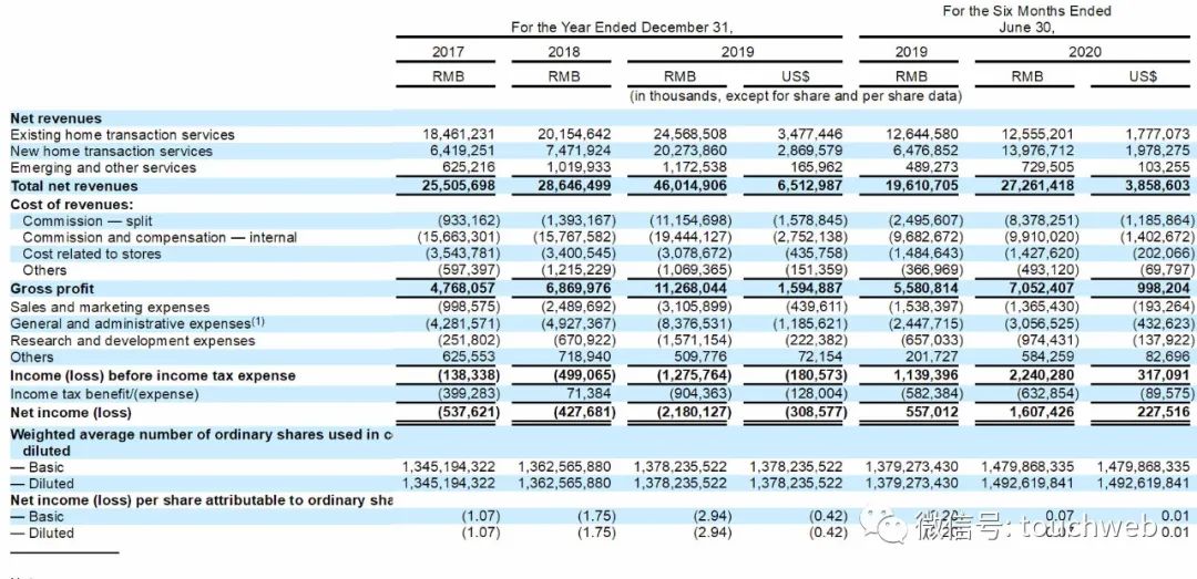 更新的招股书显示,贝壳找房2020年上半年达成1.33万亿元的平台成交总额(GTV,Gross Transaction Value),相比上年同期的8900亿元增49.4%;