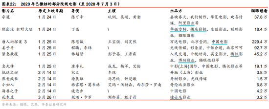 影视传媒板块,光大证券建议重点关注华谊兄弟(《八佰》点映票房与口碑良好);推荐光线传媒(七夕档《荞麦疯长》、《姜子牙》定档国庆),关注万达电影(《唐人街探案3》,定增获批)、推荐电影票务龙头猫眼娱乐(H)。院线短期受大片上线催化,长期看集中度提升。推荐现金储备充裕的龙头中国电影,关注上海电影、金逸影视、横店影视。 |