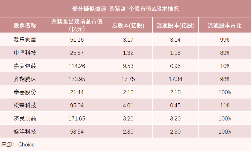 综合这些“杀猪盘”案例可初步判断,荐股方的目标公司不一定都是小盘股,也不完全是流通股本占比小的公司,如下图所示。