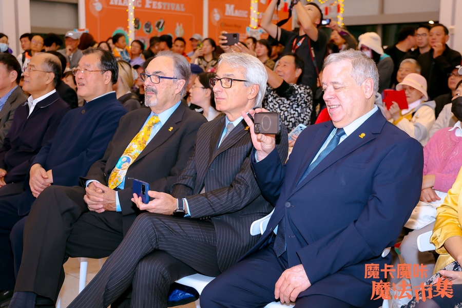 开幕式上,魔术师刘谦等嘉宾共同为舞龙“点睛”,象征市集正式“开市”。一场奇幻热烈的魔术之旅,随之开启。